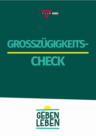 Wir haben einen kleinen Check entwickelt, mit dem ihr einfach und überschaubar als Team, Vorstand oder ganzer CVJM reflektieren könnt, wie ihr im Sinne der Großzügigkeit unterwegs seid und wo ihr neues ausprobieren könntet. Du kannst die pdf digital ausfüllen oder dir als Broschüre ausdrucken - viel Spaß beim Entdecken und neue Schirtte wagen.